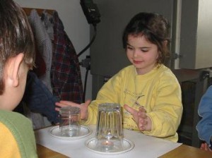 - verfügen über ein schnelles Erkennen von Gesetzmäßigkeiten, können schnell die Experimentabläufe durchschauen: „Aha, ich weiß schon: heute machen wir die Kerze mit viel und wenig Luft aus.“