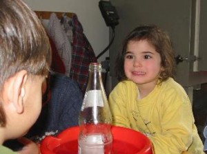 In dieser Kindergruppe sind die Kinder von 3;11 bis 5;8 Jahren. Sie sehen Ayse – mit gelbem Pullover -, die bei den „Großen“ mitmachen kann.