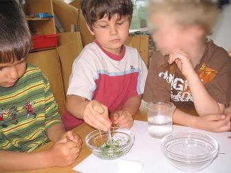 Die Experimentier-Gruppen sind nicht starr zusammengesetzt. Ich achte darauf, dass die Kinder sich ihrer Begabung entsprechend weiterentwickeln können und dass sie in ihren besonderen naturwissenschaftlichen Interessen gefördert werden.